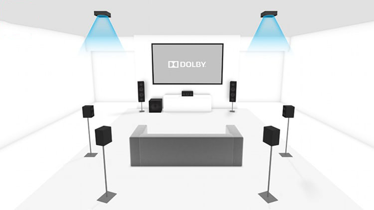 Для кинотеатров формат Dolby Atmos может одновременно использовать 9.1 bed основных канала и до 118 отдельных объектов, которые могут независимо перемещать в пространстве на 64 независимых громкоговорителя. Сравните разницу - 7 каналов в стандарте Dolby Surround и 64 канала в Dolby Atmos.