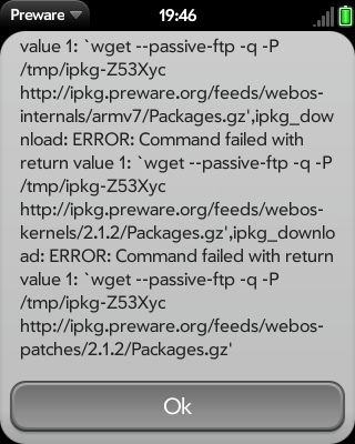 при инстали патчей\тем из preware все время вылетает ошибка "error installing: see IPKG log" , заходя туда в графе "Postinst" написан текст красными буквами:
