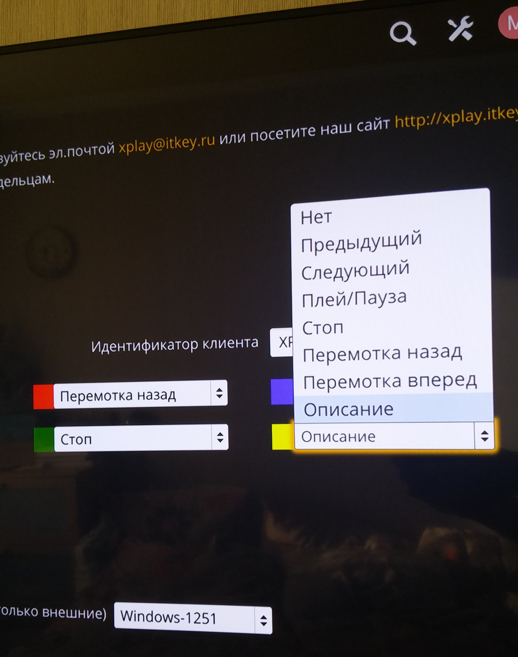 Во встроенном плеере возможности изменить функции кнопок пульта нет. Если перейдете к просмотру фильмов по DLNA, то есть такой плеер XPlay, в котором можно назначить цветным кнопкам на Magic Remote нужный вам функционал (см. на фото).