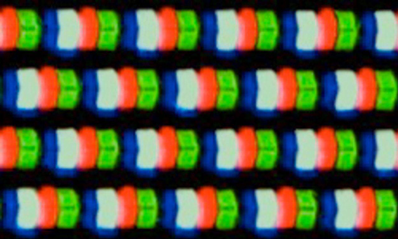Обновление 08/31/2017: Повторная протестирована цветовая гамма до начала тестирования на 24/7 OLED-выгорания на версии программного обеспечения 03.60.03. Цветовая гамма хуже, чем первоначально тестировалась, потому что телевизор использует другие субпиксели даже при отображении чистых цветов. Здесь показаны пиксели телевизора при отображении чистого синего, а также загорается зеленый подпиксель, что уменьшает насыщенность синего. Обновлены оценки цветовой гаммы и изображения.
