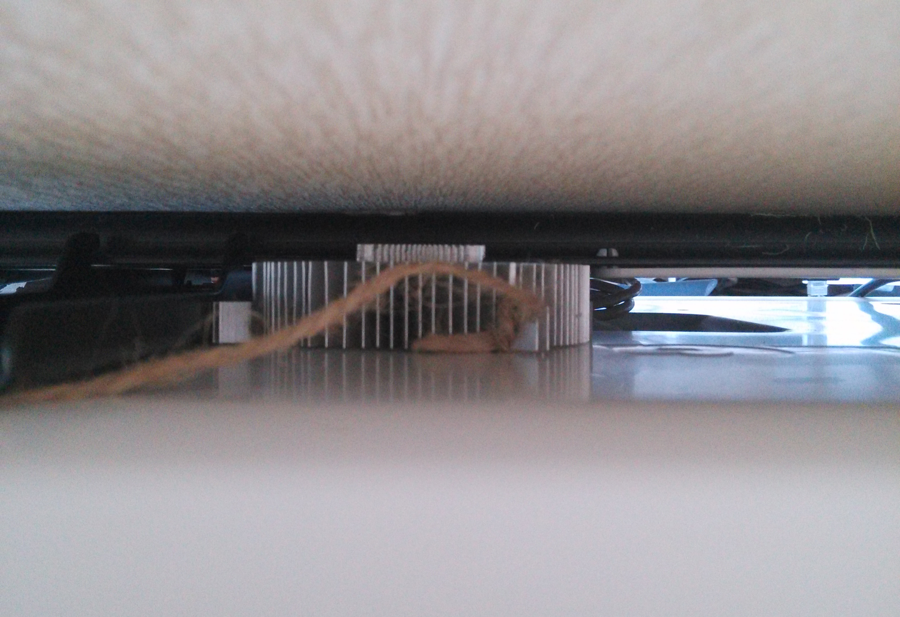 Пока нашел выриант попроще - взял аллюминиевый радиатор и воткнул его между кронштеном и телеком: встал плотно, тепло отводит.
