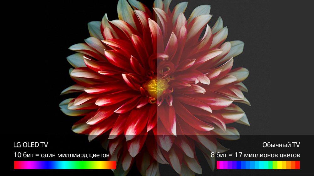 В общем, цветовой градиент выглядит очень гладко без каких-либо перенасыщений. Можно отметить, что в прошлогодних сериях B6 и C6 могут наблюдаться небольшие недостатки в темных цветах, но только не в серии LG C7.