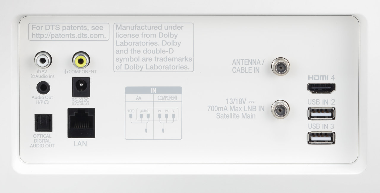 Кроме основных HDMI и USB портов есть входы композитного видеосигнала (для серии LG OLED C7P), антенный RF вход, оптический выход аудио системы и другие. Но отметим, что с 2016 года производитель убрал компонентный вход в серии OLED C7, в европейской версии его нет. По мнению LG три HDMI и два USB порта вполне достаточно для подключения внешних устройств — у вас в доме, возможно, такового количества не наберется.