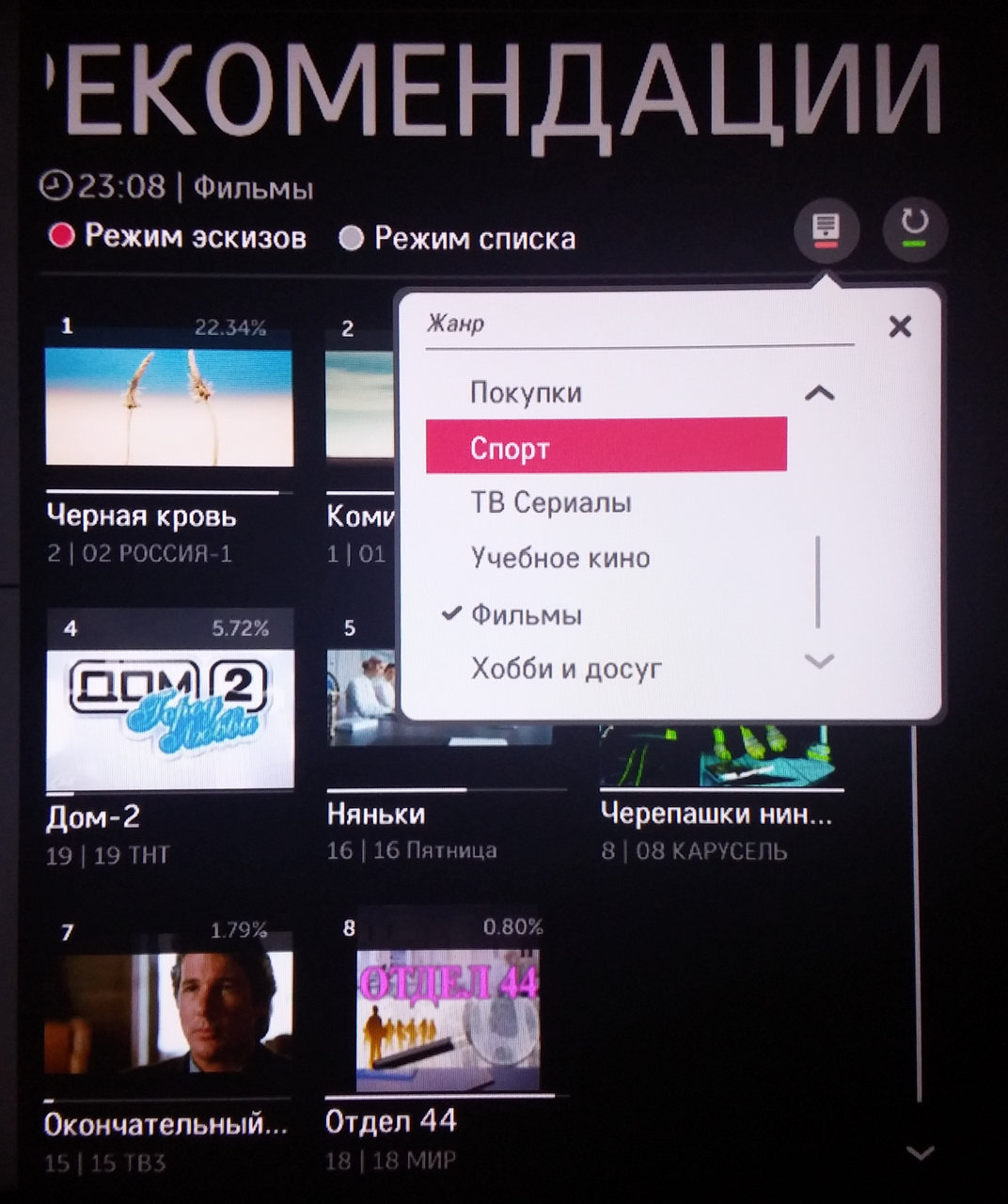 Это меню изобретено в webOS 2.0, но появилось и webOS 1.0 после одного из обновлений. Единственное применение Рекомендаций, которое я для себя нашел, это быстрый выбор, с помощью фильтра, идущих в эфире программ определенной тематики (детские, новости и т.п.).