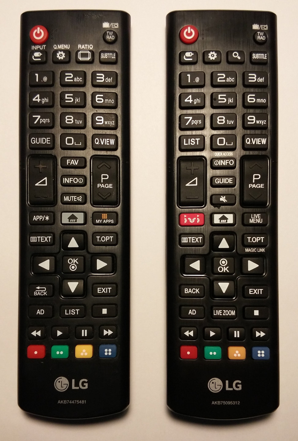 Пульт в тв обычный кнопочный, модель AKB75095312. Если приглядеться, можно видеть, что он основательно переработан в сравнении со старым, в основном конечно для нужд webOS 3.5.
