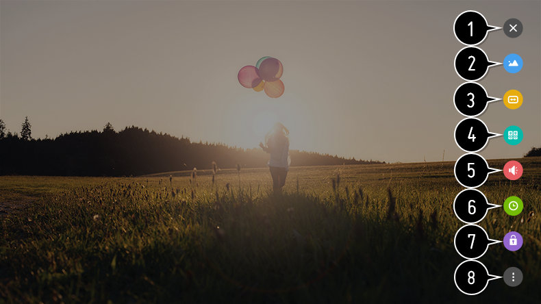 Для быстрого и удобного отображение понятных элементов управления настройками телевизора, таких как режим экрана, формат экрана, аудиовыход и другие, нажмите кнопку кнопку Q.Menu ("шестеренка") на обычном пульте ДУ. Для пульта Magic Remote нажмите кнопку Home ("домик") и выберите иконку настроек ("шестеренка") в правом верхнем углу.