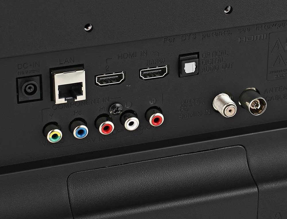 В качестве недостатка также можно отметить то, задние разъемы сделаны боковыми. Например, антенну можно обыграть угловым коннектором и даже для HDMI такие переходники есть, но вот LAN разъем настырно упирается в стену. По этой причине, возможно, вам придется несколько отодвинуть ТВ от стены, чтобы получить зазор где-то 4-5 см.