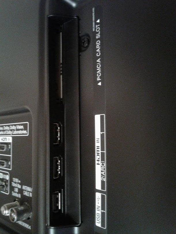 Боковая панель оснащена двумя HDMI входами (один из которых совместим с ARC) и одним разъемом USB 2.0. Присутствует слот условного доступа CI. Кроме того на борту имеется встроенный Wi-Fi модуль (с поддержкой стандартов 802.11a, 802.11b, 802.11g, 802.11n, 802.11n 5 ГГц, 802.11ac, Wi-Fi Direct).