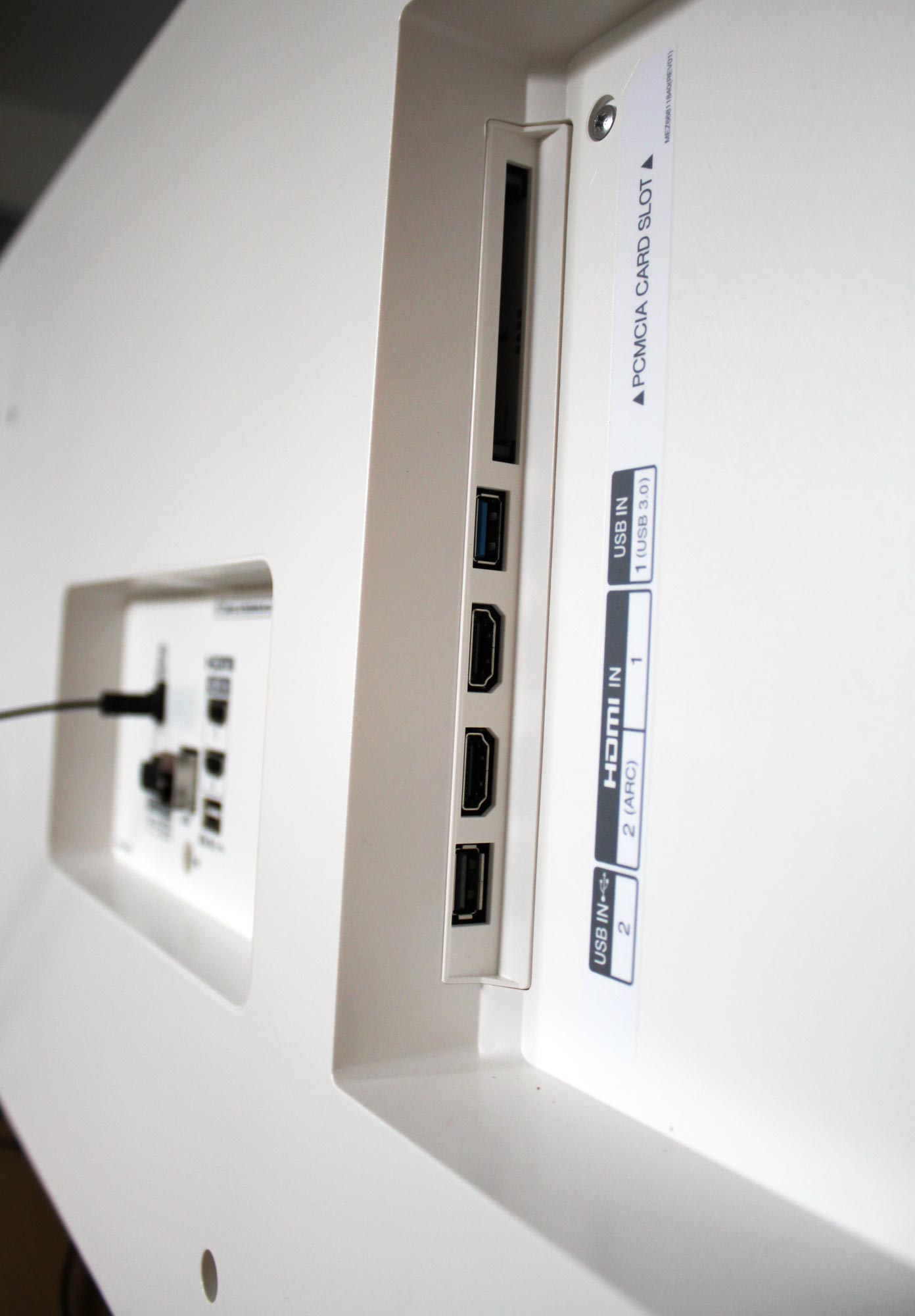 По разъемам все максимально продумано – 3 USB, один из которых версии 3.0, 4 HDMI – достаточно, чтобы подключить всю домашнюю технику, есть выход звука как на оптику, так и аналоговый разъем для наушников или внешней акустики (mini-jack 3.5 мм), например, компьютерной – этого разъема очень не хватало на 55EG910. У меня, например, весь просмотр происходит вечером, ночью и просмотр в наушниках актуален на 100%.