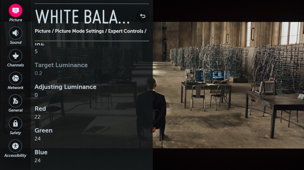 Итак, для IRE 5 (спускаемся с IRE 100 до 5) - Яркость 15. Именно эта светимость отвечает за околочерный, который в некоторых жк вообще не отображается.