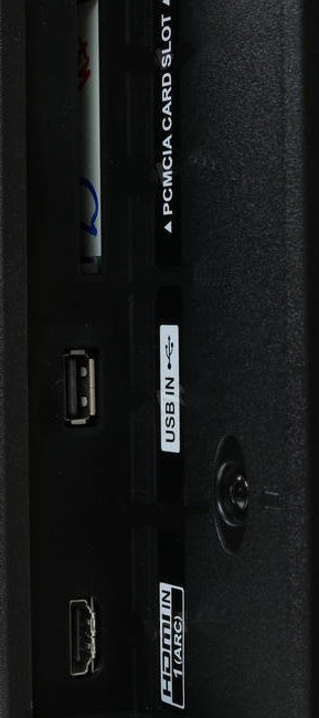 Боковая панель оснащена одним HDMI (ARC) входом и одним разъемом USB 2.0. Кроме того на борту имеется встроенный Wi-Fi и слот условного доступа CI.
