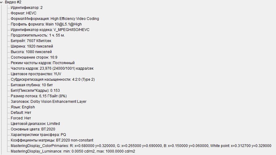 alexfrolkin писал(а):Как заставить родной плеер в телевизоре "понять" что в видео файле есть dolby vision ? Через MediaInfo видно что есть вторая дорожка с dolby vision, но при воспроизведении на телевизоре появляется значек HDR но не dolby vision.