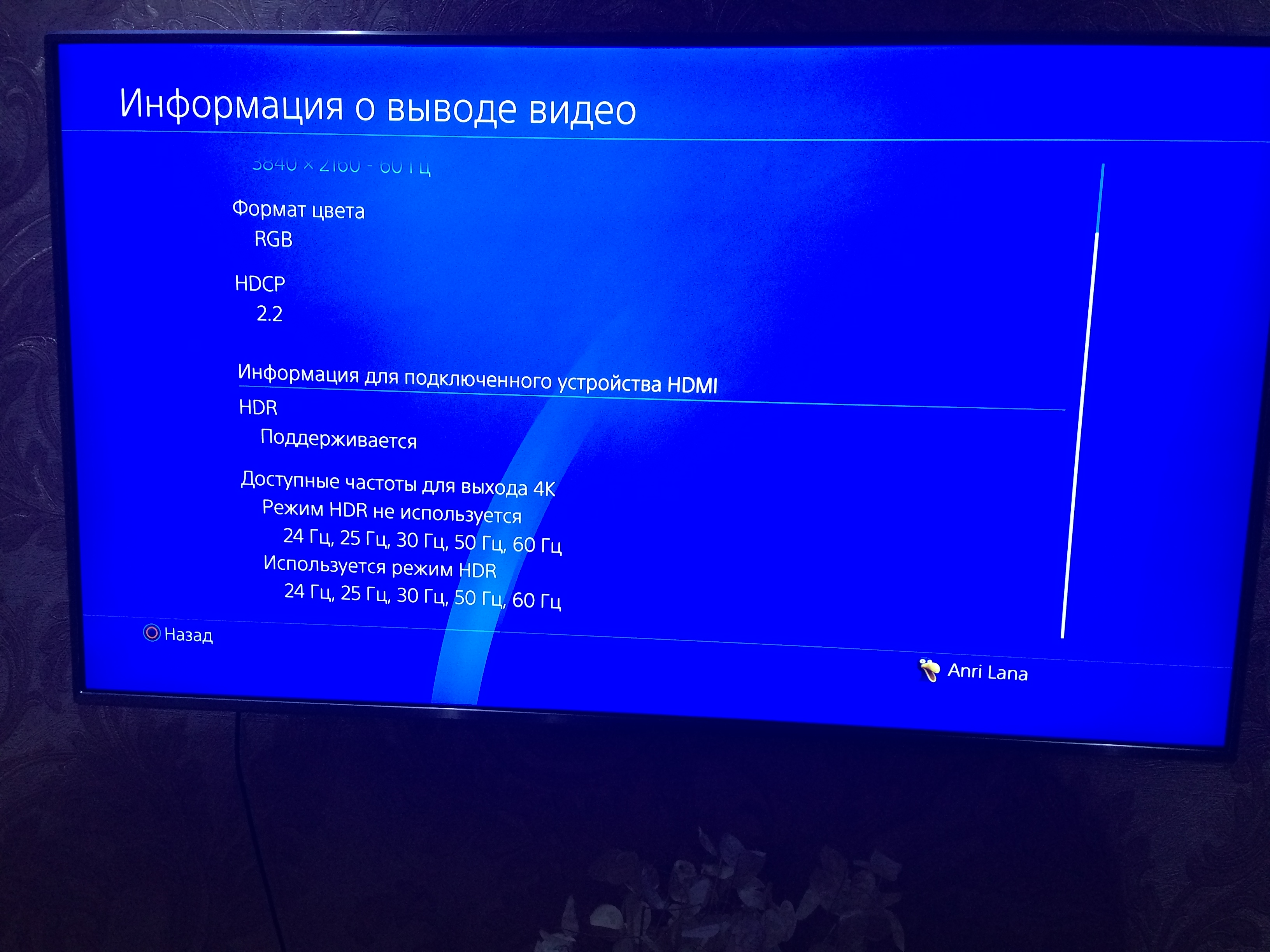 Добрый день) скажите пожалуйста, почему на моём тв LG 55UJ675V при подключении к PS4 Pro в настройках изображения картинка с такой длинной надписью внизу о герцах в HDR , а не вторая картинка как у всех???