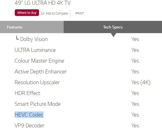 Кстати, на англоязычном сайте lg.com прямо указана поддержка HEVC моделью 49UJ750V (аналог 49UJ740V для Европы).