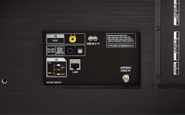 Задняя панель телевизора LG SK9500 оснащена следующими интерфейсами: 2 антенных входа (для кабельного/эфирного ТВ), компонентный AV-вход, один порт LAN (со скоростью 100 Мбит/сек), один порт USB (версии 2.0). Что касается аудио, то на этой же панели расположен только оптический аудиовыход. Выхода 3,5" для наушников в телевизоре нет.