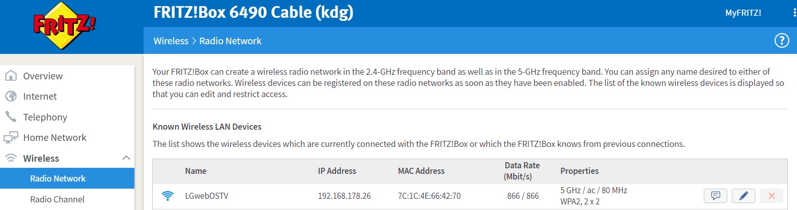 Подключен к роутеру FRITZ!Box 6490 Cable