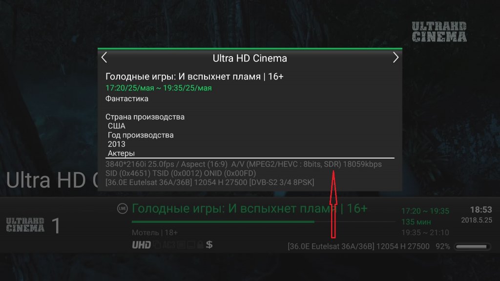 Битрейт видео не так высока - это одна из самых низких, если не самые низкие среди каналов UHD на орбите, в среднем (после длительного анализа) едва ли ок. 3,79 Мбит/сек, но с большой динамикой изменений практически от 0,9 Мбит/сек (при UHD!) до 11,5 Мбит/сек.