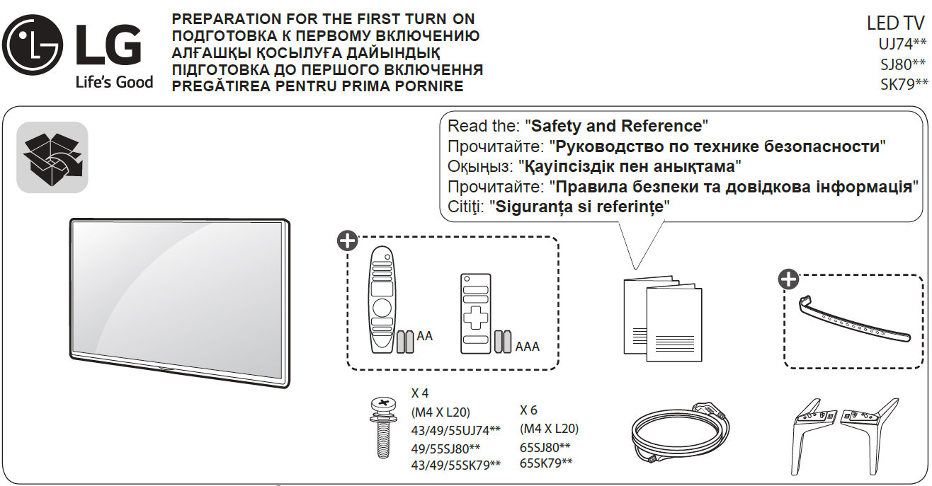 Для серии LG SK7900, которая поставляется в Россию, доступны три диагонали. Это модели LG 49SK7900, LG 55SK7900 и 65SK7900. Для североамериканского рынка идут модели LG 49UK7700, LG 55UK7700 и LG 65UK7700.