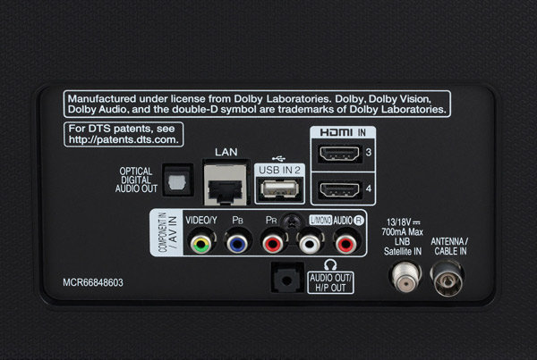 Задняя панель телевизора LG SK7900 оснащена следующими интерфейсами: 2 антенных входа (для спутникового и кабельного/эфирного ТВ), компонентный AV-вход, один порт LAN (со скоростью 100 Мбит/сек), один порт USB (версии 2.0). Что касается аудио, то на этой же панели расположен оптический аудиовыход и выход 3,5" для наушников.