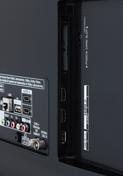 Боковая панель оснащена двумя входами HDMI v2.0 (один из которых совместим с ARC), одним разъемом USB 2.0 и слотом условного доступа CI+. Кроме того на борту имеется встроенный Wi-Fi модуль (с поддержкой стандартов 802.11a, 802.11b, 802.11g, 802.11n, 802.11n 5 ГГц, 802.11ac, Wi-Fi Direct).