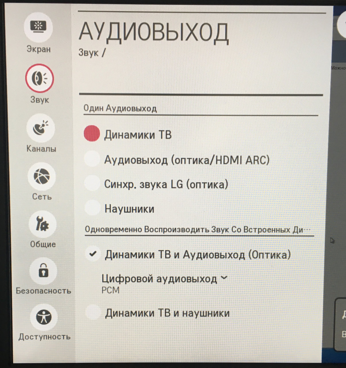 Настройка воспроизведения звука через встроенные или внешние динамики в телевизоре LG