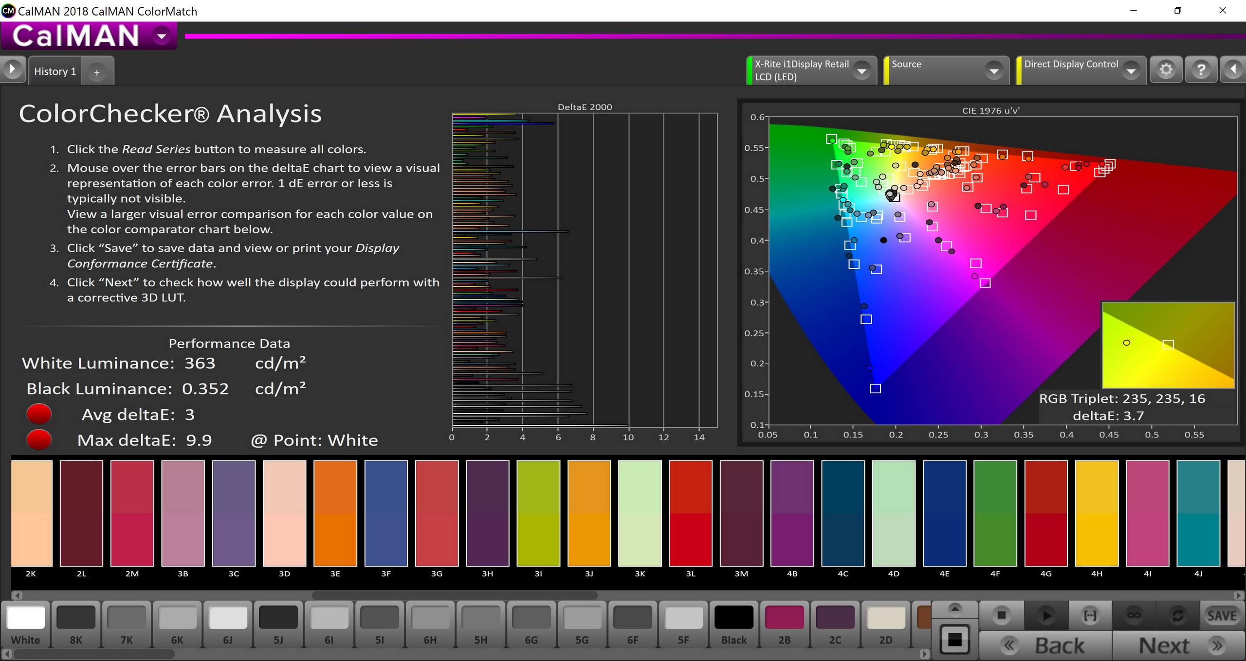 Отмечают настоящую 10-битную матрицу и отличную цветопередачу (см. Цветовой охват и пиковая яркость телевизоров LG). Измеренная ими максимальная яркость составила 507,8 кд/м2 при заявленных производителем 400. Контраст соответствует заявленному 1600:1.