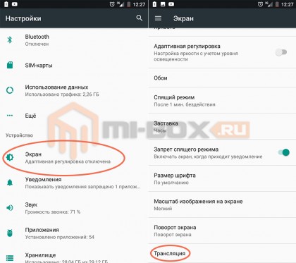 - Miracast можно также включить через меню Настройки телефона. Войдите в меню Настройки и выберите Общий доступ и соединение. Активируйте пункт Miracast.