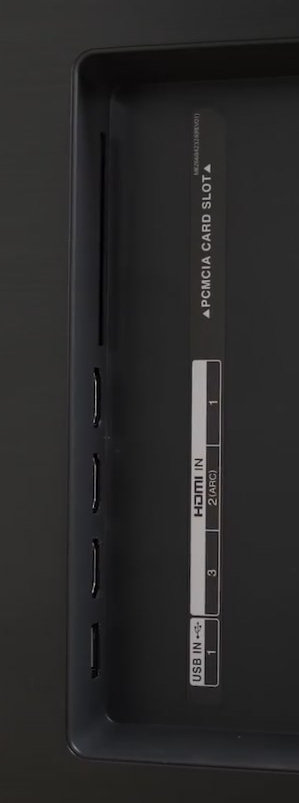 Боковая панель оснащена тремя входами HDMI v2.0 (один из которых совместим с ARC), одним разъемом USB 2.0 и слотом условного доступа CI+. Кроме того на борту имеется встроенный Wi-Fi с высокоскоростным методом соединения 802.11ac и адаптер Bluetooth.