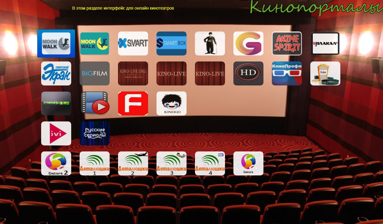 Там собираю интерфейсы к онлайн кинотеатрам, перенес Xsmart, SsmartBox, GetsTV и moonwalk и др. Кстати там появился сайты киноха, кинога, mix filvov, kino-onlin2018 (ничего этого нет в форке ). По количеству и качеству видео это уже превосходит представленное в форкплеере - рекомендую. Особенно мне понравилась кинога, второй день смотрю, очень достойный виджет. Этот раздел будет дополняться, работает на LG от 2010 года выпуска.