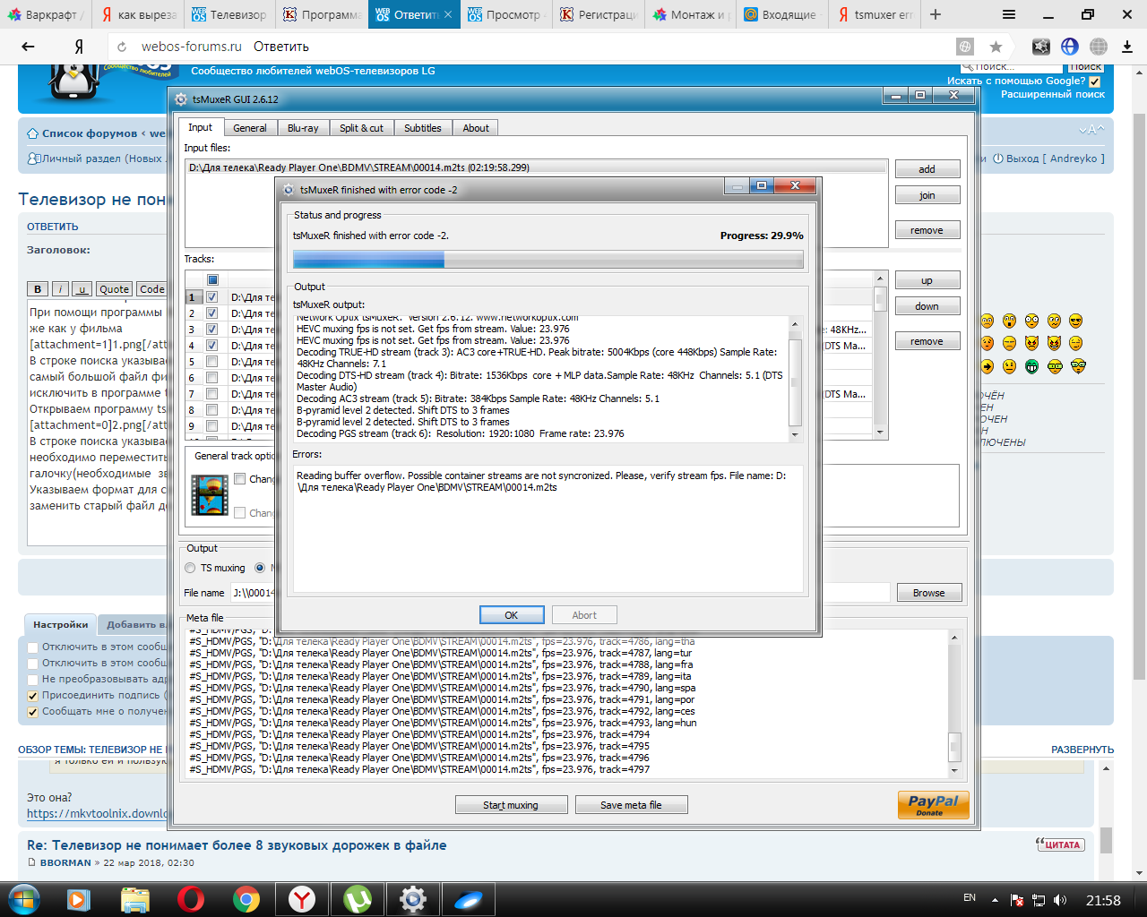 abovar писал(а):Andreyko писал(а):Один из примеров в скрине ниже (для фильма Первому игроку приготовиться https://rutracker.org/forum/viewtopic.php?t=5584466). Сталкивались ли вы с подобными проблемами или может быть есть расшифровка ошибок возникающих в программе? Может я не учитываю каких-то настроек из-за чего всё слетает?