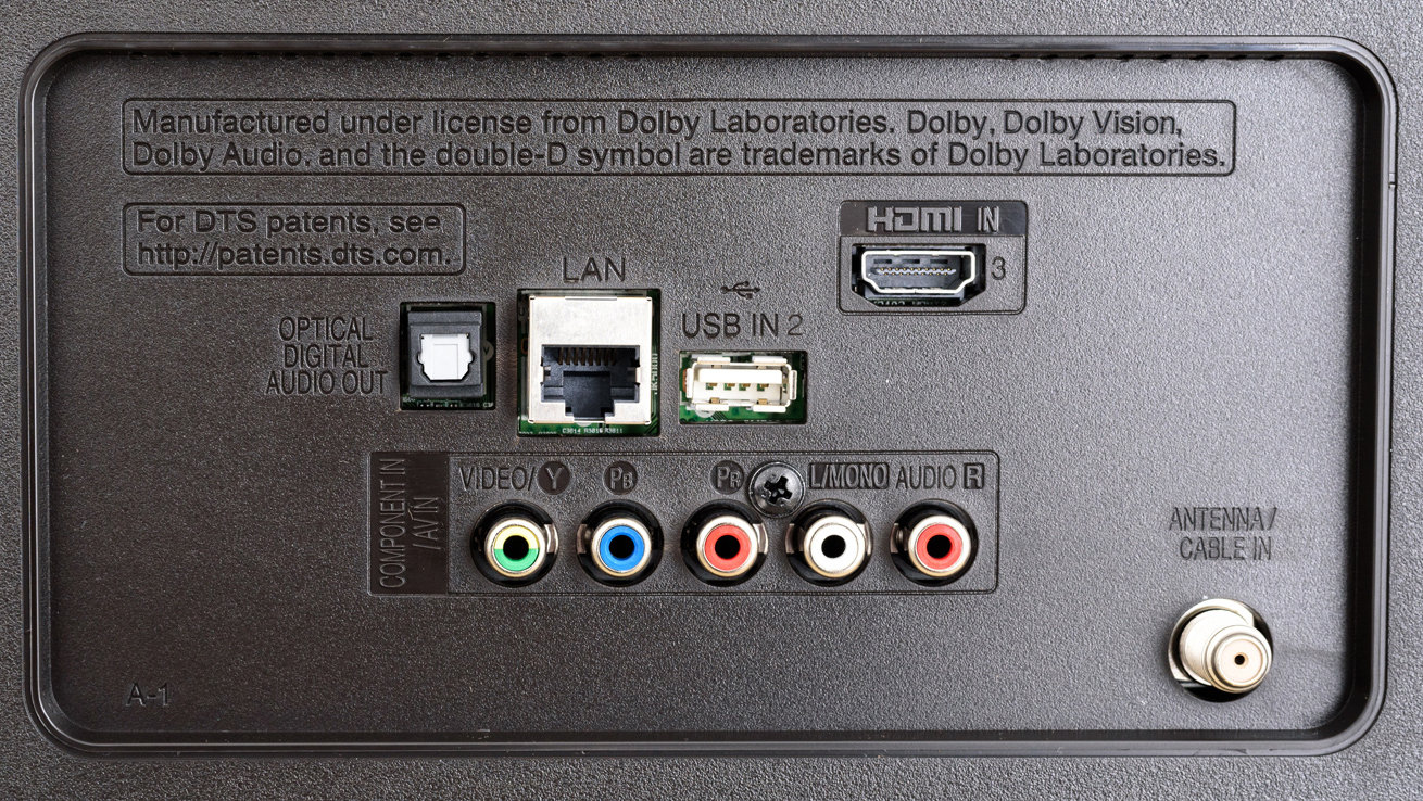 Задняя панель телевизора LG UK6100 оснащена следующими интерфейсами: 2 антенных входа (для спутникового и кабельного/эфирного ТВ), компонентный AV-вход, один порт LAN (со скоростью 100 Мбит/сек), один порт USB (версии 2.0). Что касается аудио, то на этой же панели расположен только оптический аудиовыход, выход 3,5" для наушников отсутствует.