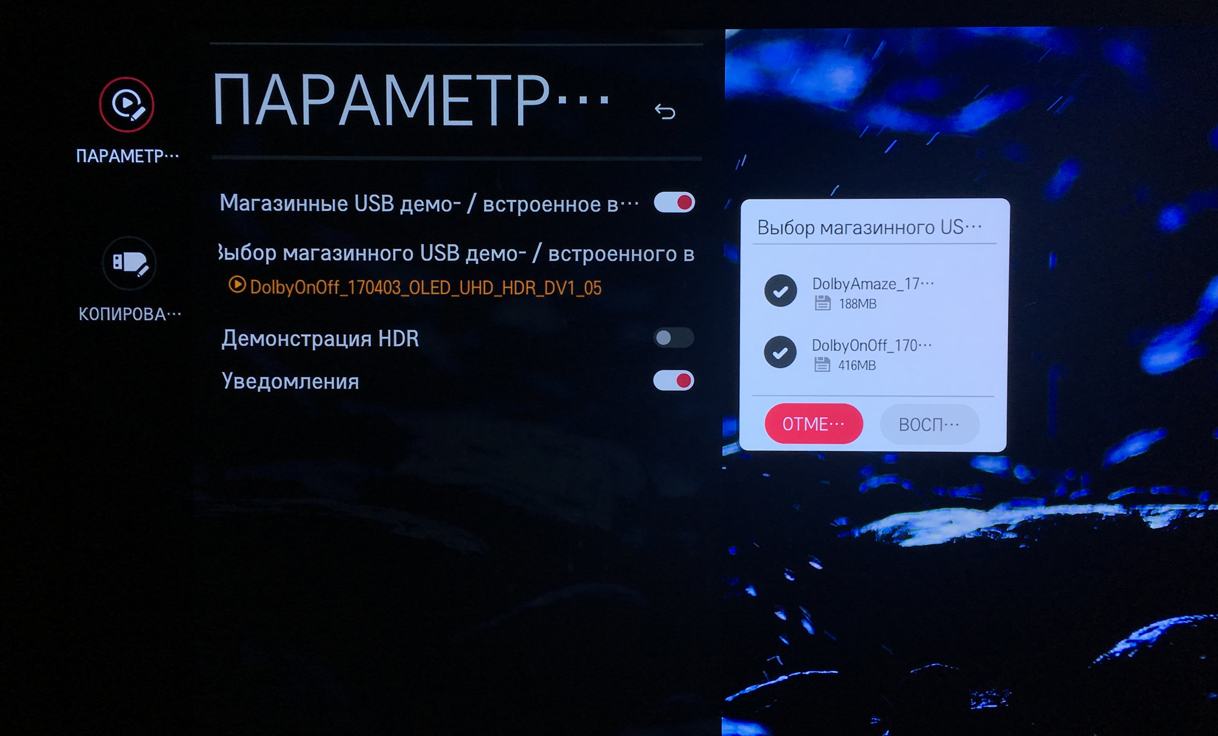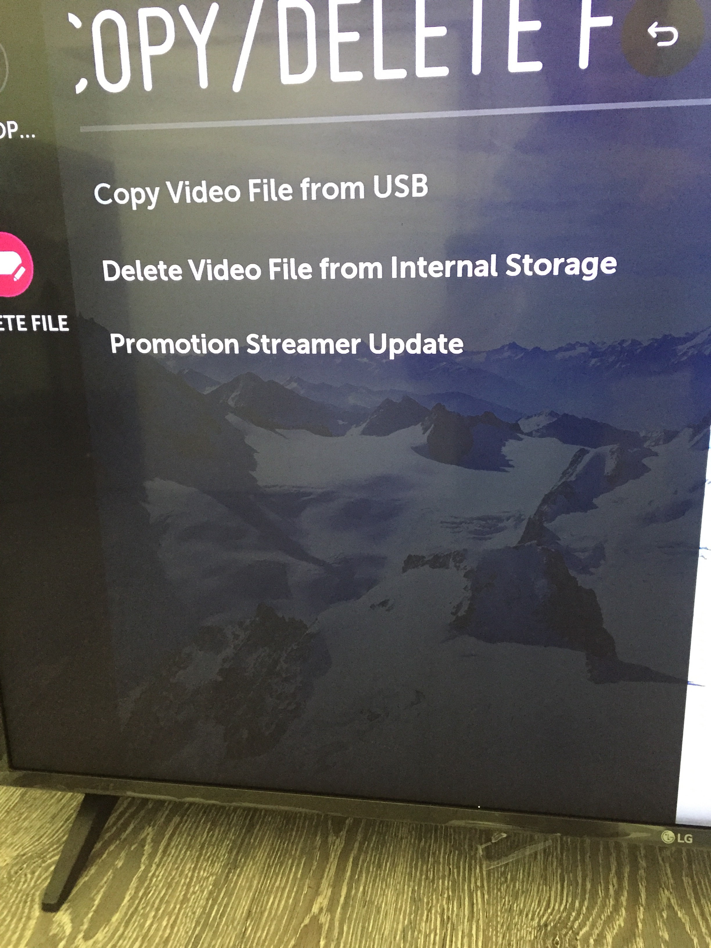 перевел телевизор в режим "Store". Записал на USB файлы lge, скачанные с сайта. Телевизор запускает DEMO, который у него в памяти, и ему все равно на флешку. Я даже скопировать с флешки не могу.