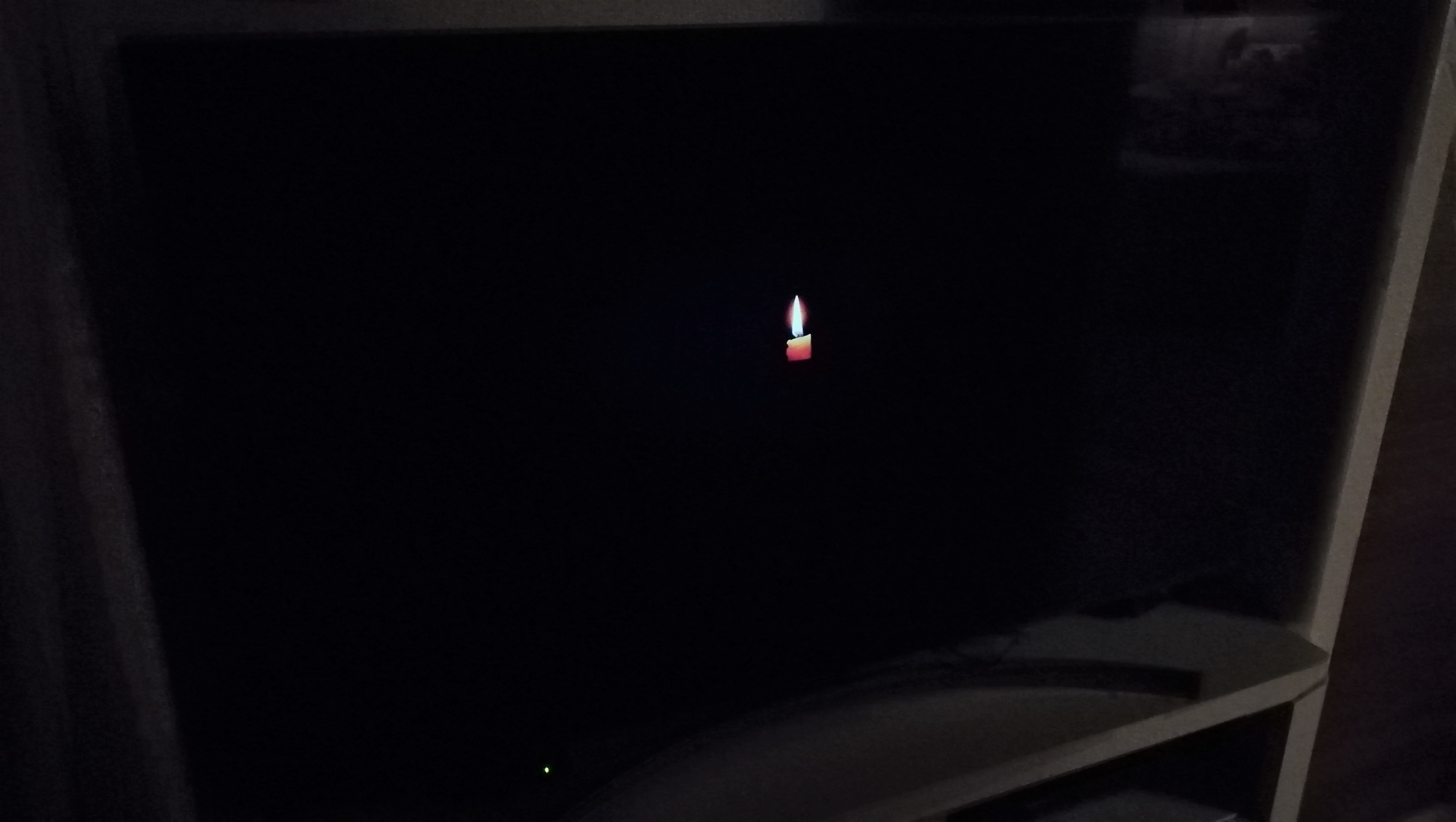 Сделал фото на смартфон. Реально, конечно, не совсем так, а больше похоже на 5-ти процентную заливку серого, а тут какое-то голубоватое свечение и даже слегка проявляется моё отражение, и добавляется свечение от отражения лежащего рядом светлого ковра:) При включении локального затемнения даже на минимум экран становится полностью чёрным, практически ОЛЕД, так сказать..) Да, и в настройках стандартного режима убавил яркость подсветки до 60, так намного меньше паразитного свечения на тёмных местах картинки.