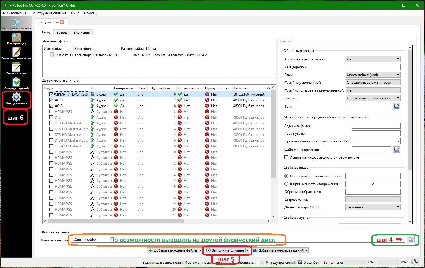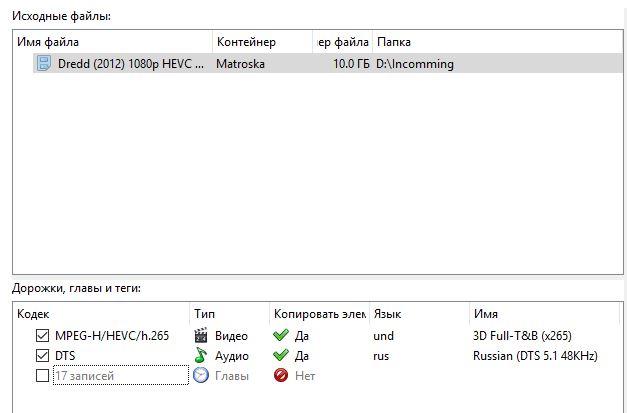 Кстати, если кому-то больше нравится программа tsMuxer, то на выходе бывают проблемы с m2ts (вероятно, что из-за H.265 HEVC). А вот если задать в задании выход в формате ts, то перепаковка происходит корректно.