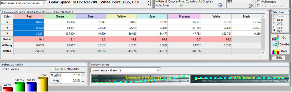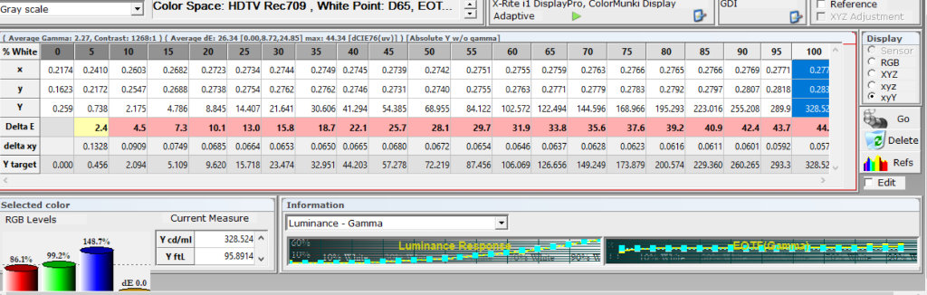 В режиме Эксперт Темно 138 люкс - достаточно комфортная яркость для полной темноты, если бы не IPS матрица. При этом коэффициент мерцания выстреливает на 140%.