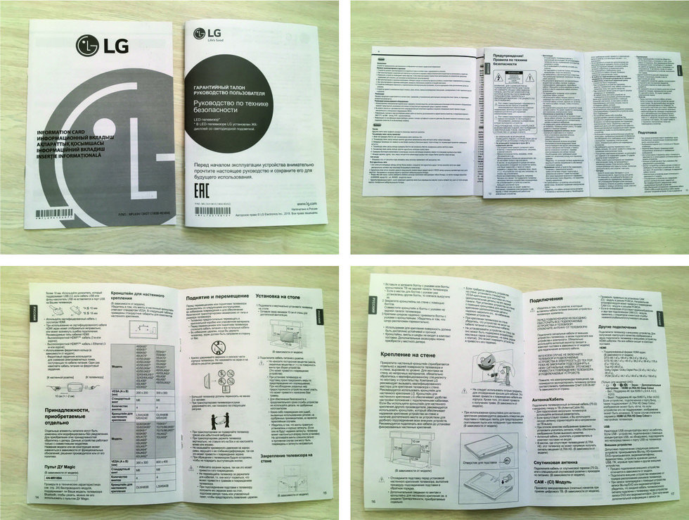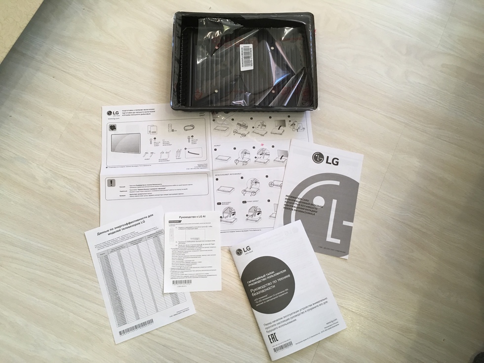 Инструкция по сборке, данные об энергоэффективности ТВ и руководство по голосовому управлению (необходим пульт LG magic):