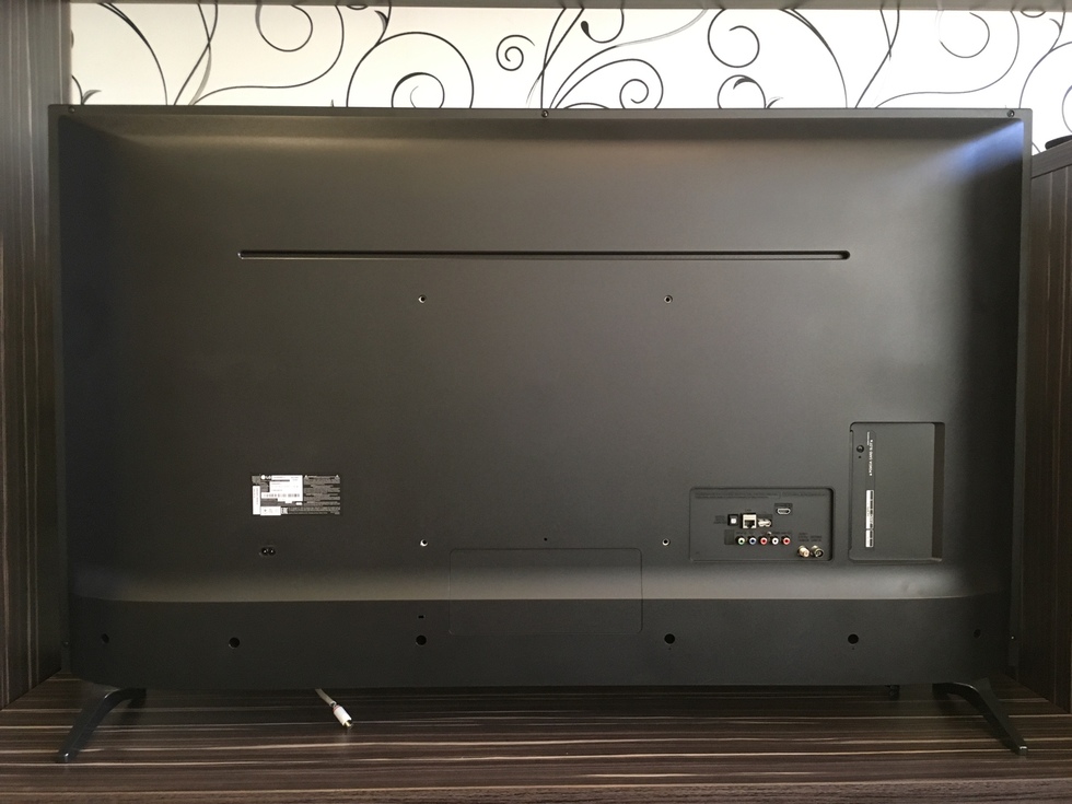 97,5x61,5 (57,7 без ножек, но с выступом по центру) х8 см. Тумба под телевизор должна быть не менее 85х19 см. На стену крепится с помощью кронштейна VESA 200x200. В телевизоре 4к IPS RGBW матрица с Direct подсветкой. Это дает нам более широкие относительно -VA матриц углы обзора, но низкий контраст и среднюю равномерность белого с затемнениями в углах и случайными серыми пятнами.