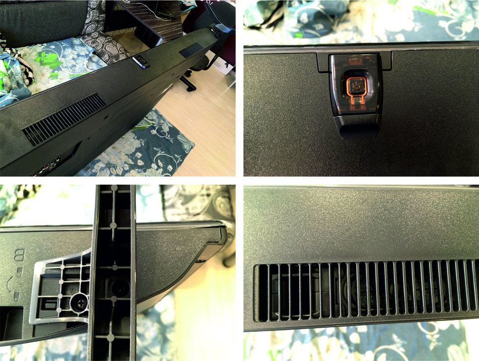 Повернемся экраном к стенке - разъемов не много, скомпонованы в несколько слегка утопленных блоков, в габаритах настенного крепежа прятаться не будут: