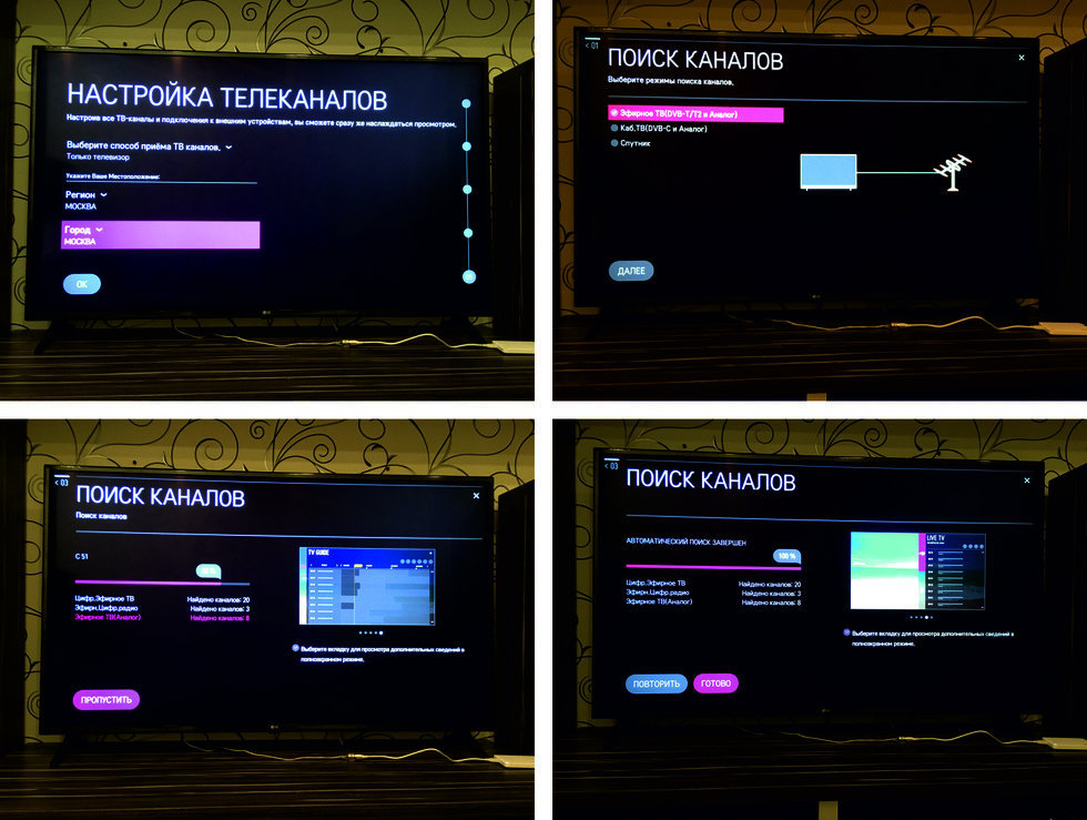 При первом включении необходимо настроить ТВ.
