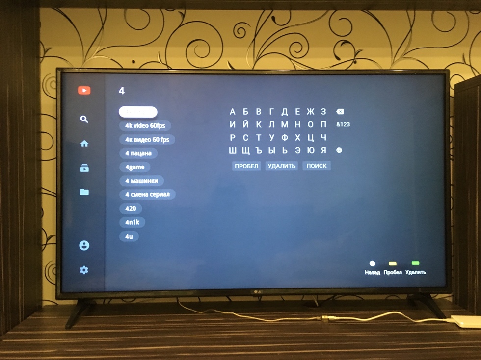 Поиск контента в приложениях осуществляется с помощью экранной клавиатуры.