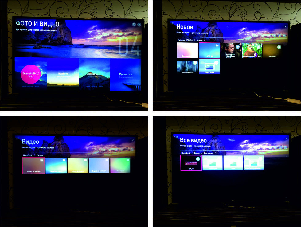 Мультимедийный контент на LG 55UK6200 можно просматривать как с внешнего носителя (с USB 3.0 устройствами дружит), так и с "расшареной" папки в сетевом хранилище/ноуте/ПК и т. д.
