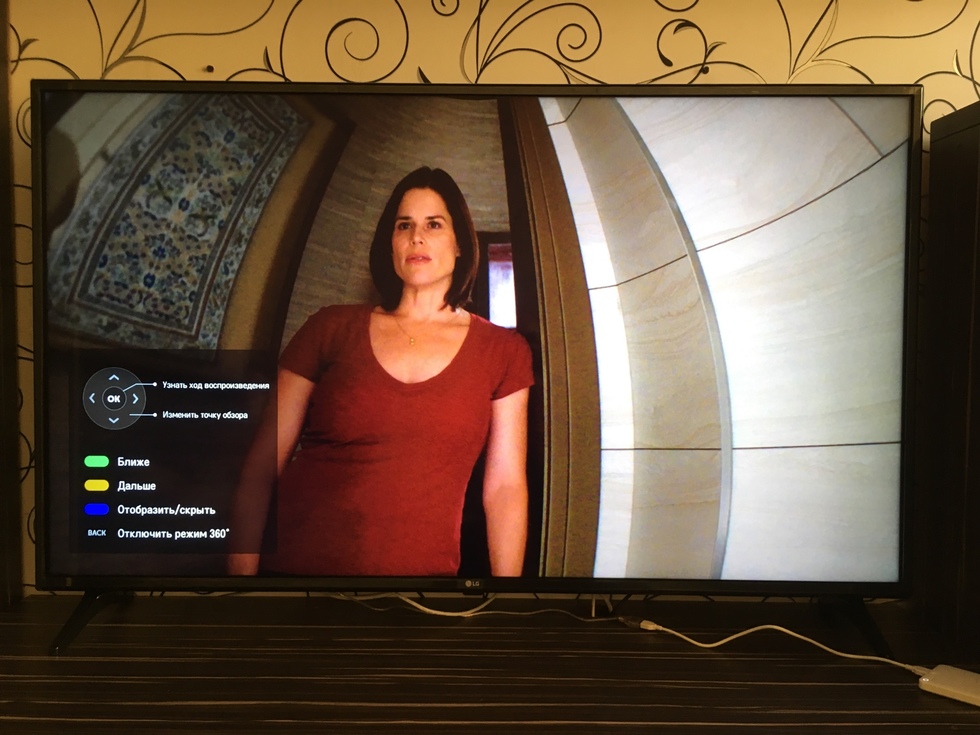 Упомяну режим просмотра в 360 градусов, перемещение по сцене происходит с помощью кнопок на пульте: