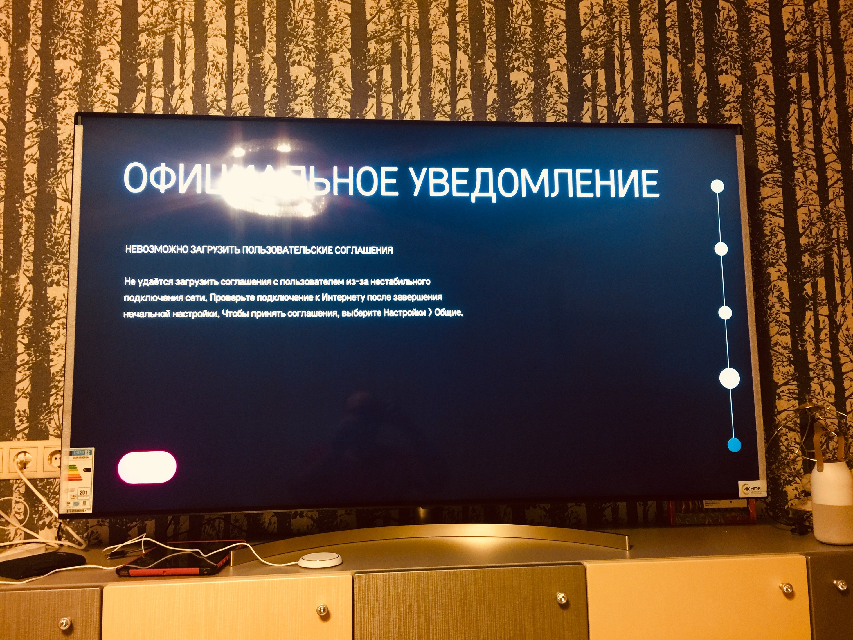 PSpectrum писал(а):На 4 шаге при первоначальной настройке тв пользовательское соглашение не грузиться и подтвердить-согласиться соответственно я не могу.
