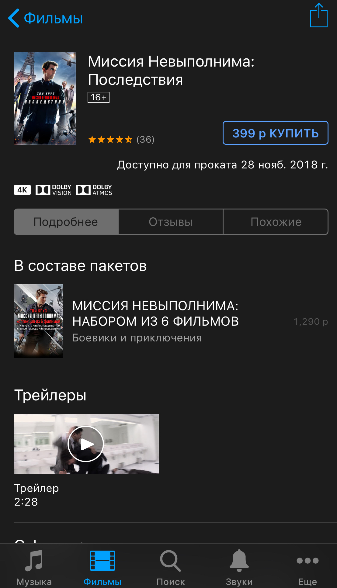 Пишут, что сегодня в iTunes появились два кинофильма в Dolby Atmos на русском: "Миссия невыполнима. Последствия" и "Рыцарь в доспехах".