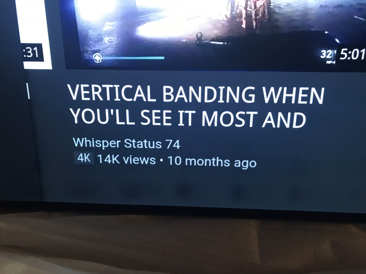 вот такой дефект обнаружился на OLED55B8SLB при попытке посмотреть бандинг. При этом сам бандинг был некритичным и слегка проявлялся на 5% сером, да и то, если присматриваться.