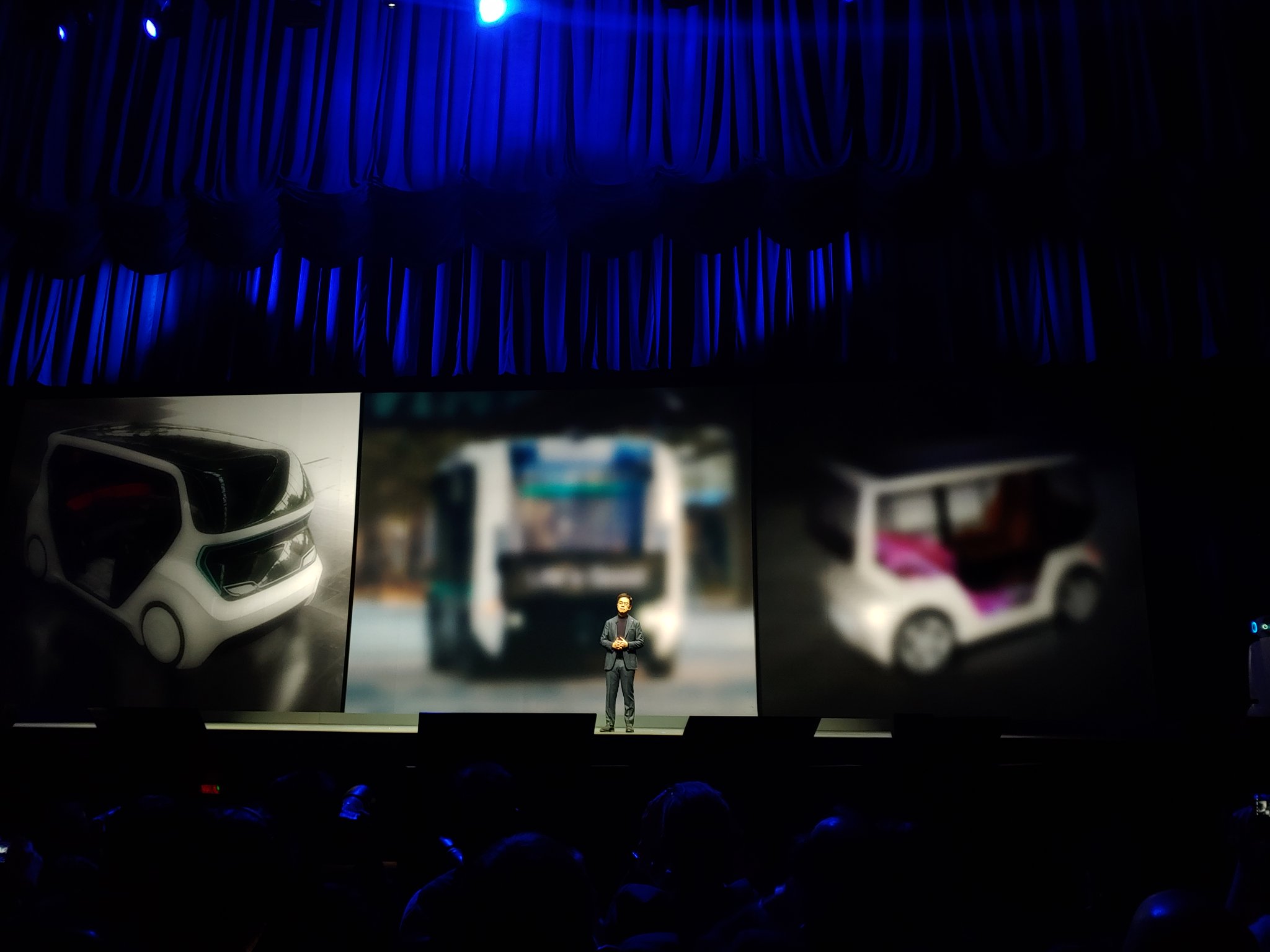 Сделанная с передовыми электронными дисплеями и деталями и программными возможностями, включая webOS Auto, модель , которая выглядит как вагон поезда , была тематизирована на автономной системе общественного транспорта.