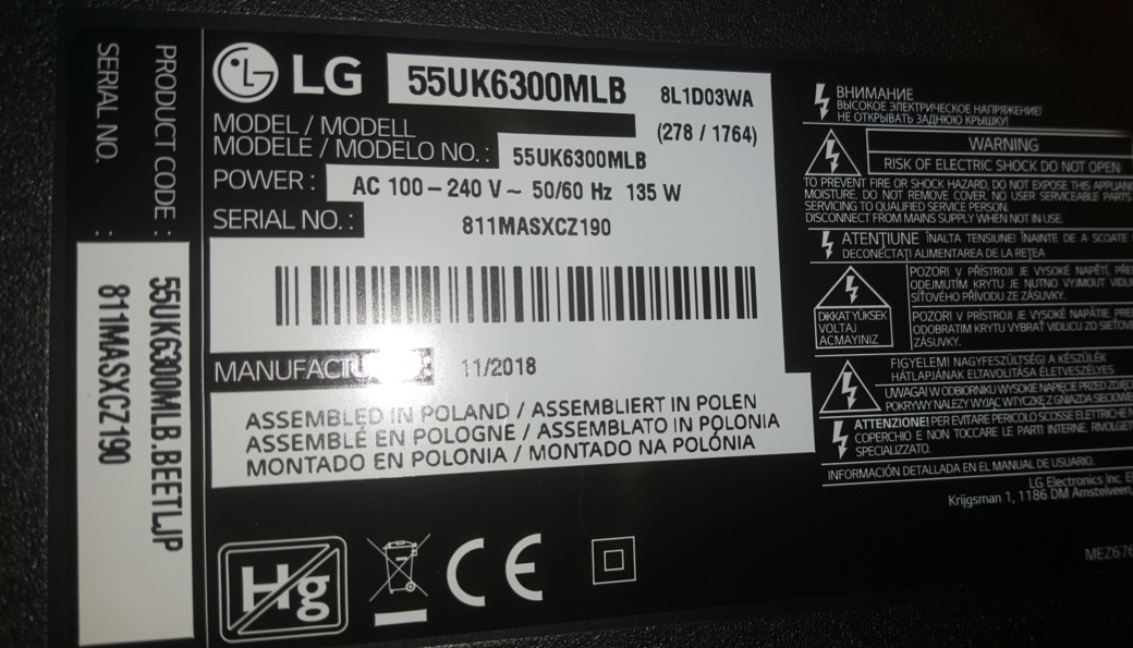 Долго присматривался к данной серии (6300) телевизоров. Разница в цене между официальными и польскими телевизорами - ровно в 2 раза, что очень подкупает. Почитал форум, оценил плюсы и минусы из описанного, в живую все очень хорошо, хороший чистый звук, картинка отличная, углы обзора тоже отлично, черный цвет есть, даже в фильмах (темно серого не увидел, может повезло :)). Не могу понять, какая у меня матрица, если читать форум - должна быть RGBW. Если правильно расшифровал продукт код на этикетке: 55UK6300MLB.BEEТLJP, то получается T - AU OPTRONICS CORP.AMVA.