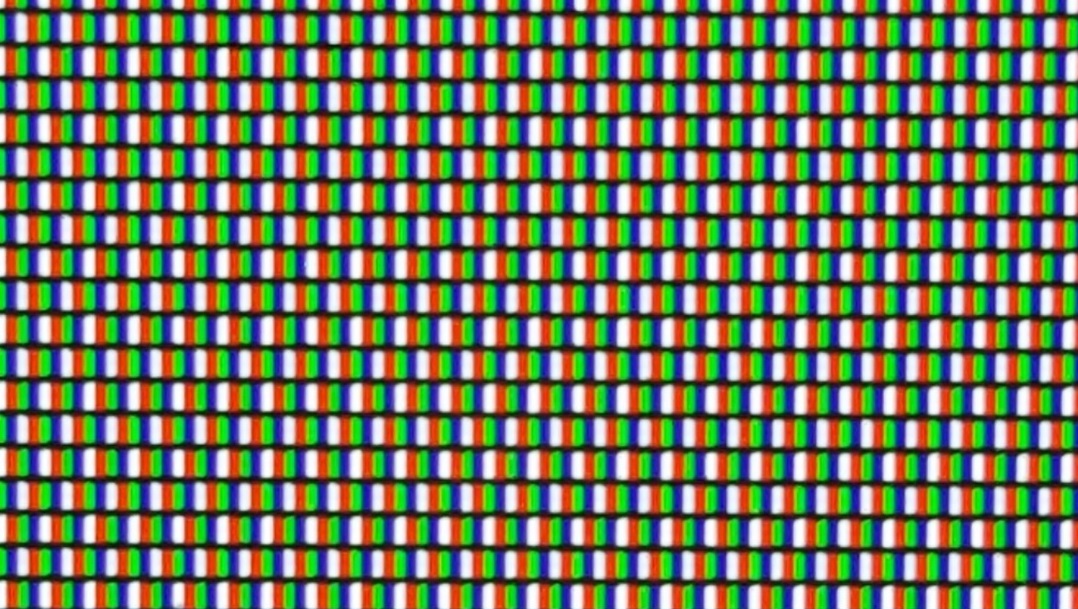 Сам ответил на свой вопрос - RGBW матрица. Телефон оказывается хороший (в камере сделал восьмикратный зум, запустил картинку из теста 4к - серый цвет, приблизил телефон в плотную к экрану, и медленно начал отдалять телефон, и все камера поймала).
