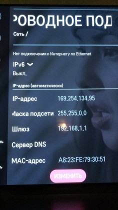 JackSparrow писал(а):Адрес 169.254. *. * устанавливает сетевая служба webOS в случае того когда не видит DHCP сервера и IP адреса не выставлены вручную. Соответственно разбирайтесь с физикой. Если провод, коммутатор и порт в коммутаторе рабочие, возможно умерла сетевуха в тв ну и т. п.