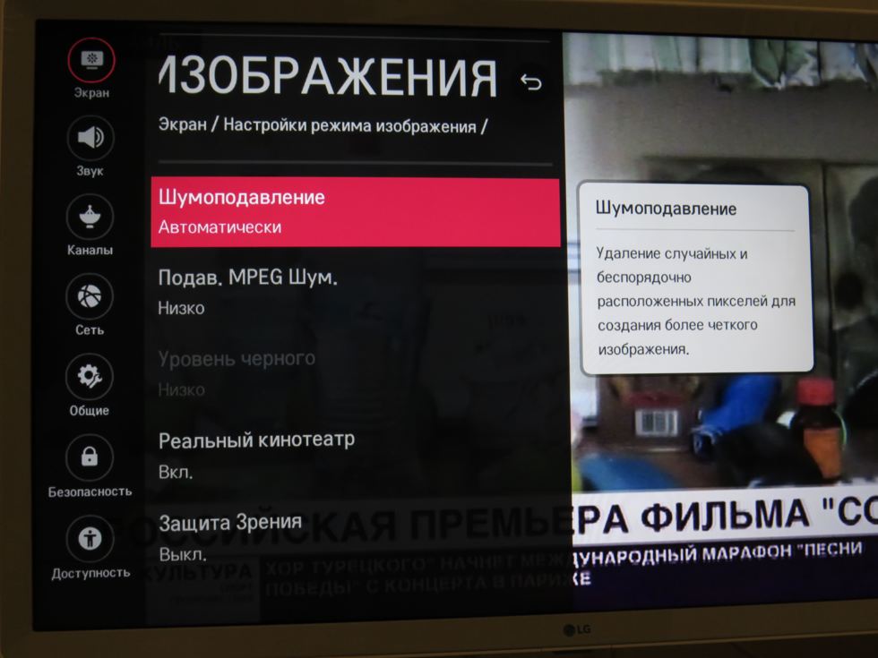 В ТВ есть функции улучшения качества картинки, например, "Динамическая контрастность", "Динамический цвет", подавление шумов, и некоторые другие полезные мелочи. Функции "улучшайзинга" картинки справляются на ура. Когда эти функции включены, то картинка сочная, качественная. Эти функции включены по умолчанию на "низко". Можно изменить при необходимости. При их выключении картинка тоже хороша, но уже не то. С ними все-таки лучше.